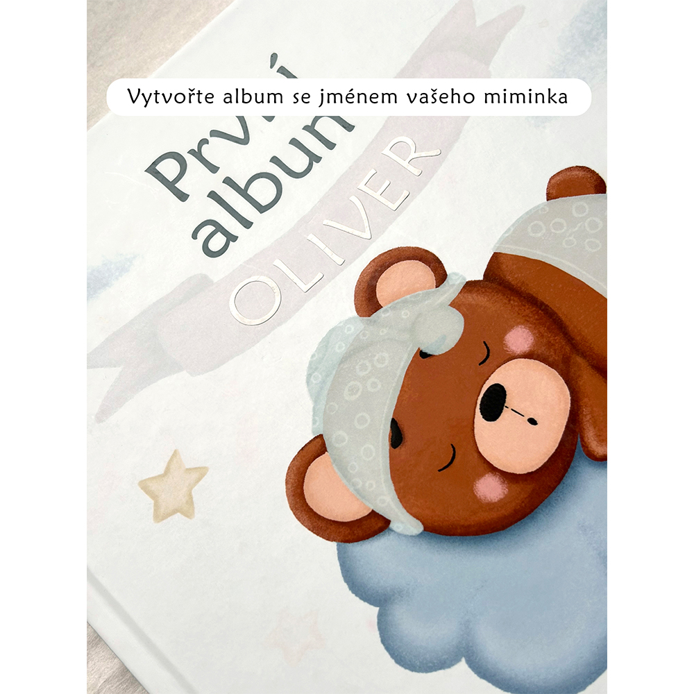 Součástí balení jsou nalepovací písmenka, díky nimž si můžete album jednoduše personalizovat podle jména miminka.