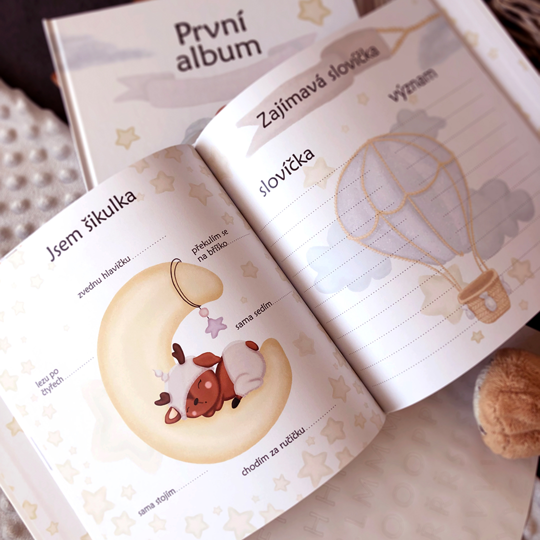 První alba, milníkové kartičky, plakáty do pokojíčku a jemné doplňky, které promění ty nejcennější chvíle vašeho miminka v poklad na celý život.